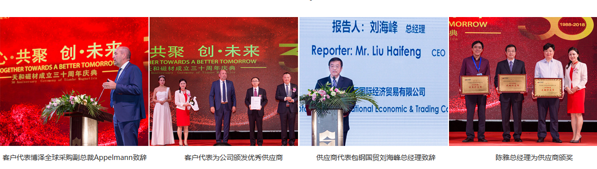 政府相关部门领导、院士、行业专家、客户、供应商以及合作伙伴等多年来支持388vip太阳集团磁材发展的各界代表分别上台致辞,对388vip太阳集团磁材30年来取得的成就给予肯定,并对388vip太阳集团磁材成立30周年表示热烈的祝贺。