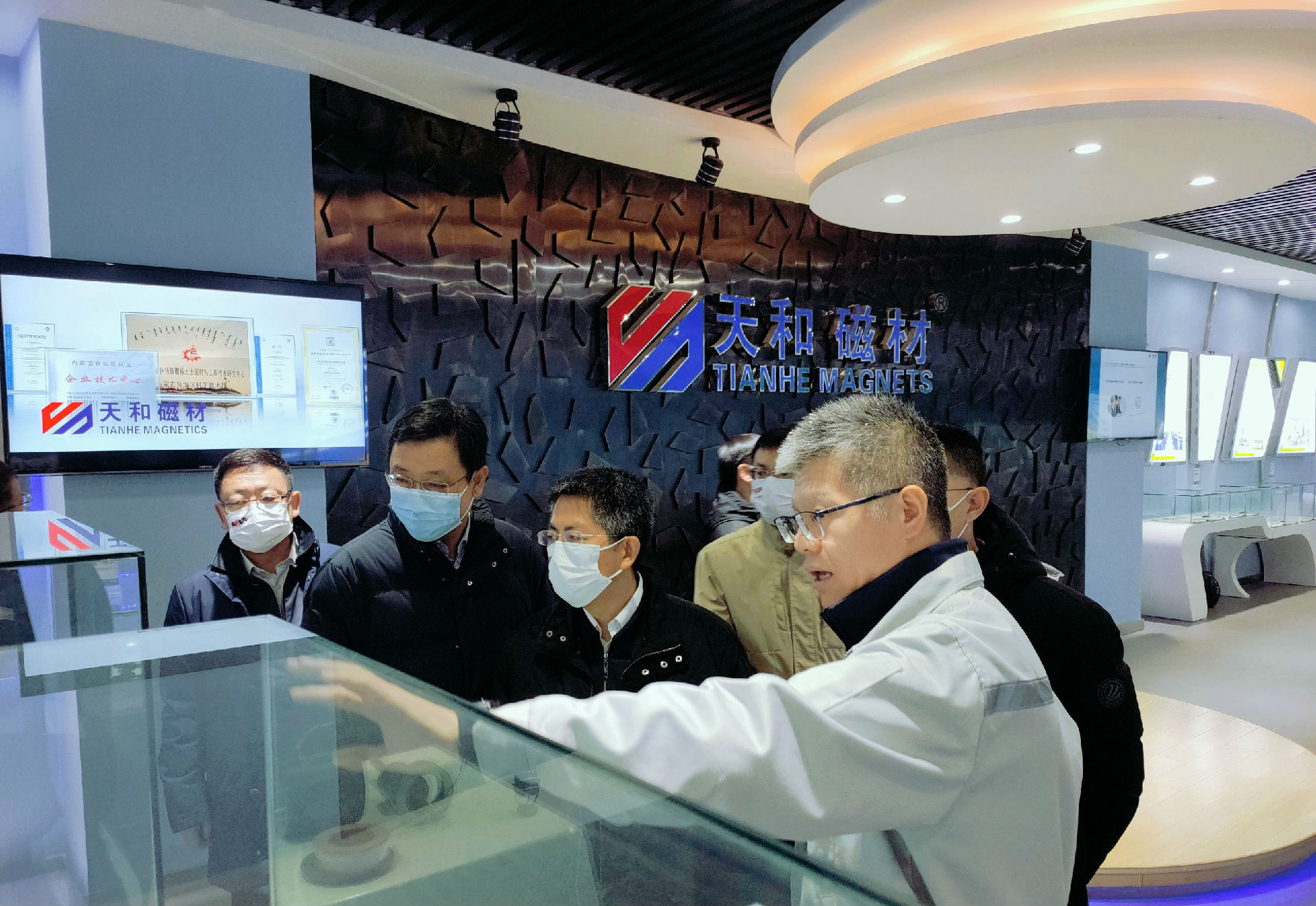 12月21日上午,工业和信息化部原材料司副司长常国武一行莅临388vip太阳集团磁材调研指导,工业和信息化部原材料司有色金属与稀土处处长王中、内蒙古工信厅冶金建材处处长刘景春、包头市工业和信息化局副局长郭玉明、稀土高新区管委会主任邬军军等领导陪同调研,公司副总经理袁易接待了调研组一行。